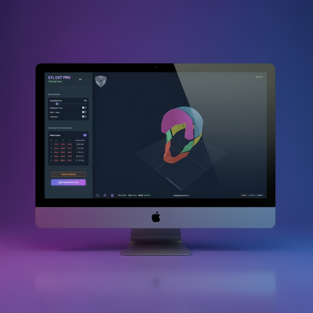 Büyük STL dosyalarınızı 3D görünümde kesim düzlemleri ile hassas şekilde parçalara ayırın. Saatler süren manuel işi dakikalara indirin.